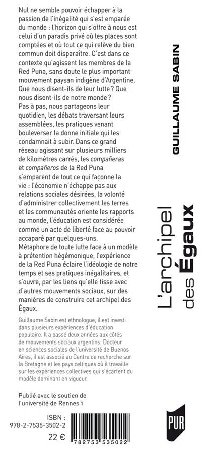L’ethnologue Guillaume Sabin vient de publier aux Presses Universitaires de Rennes le livre L’archipel des Egaux. Luttes en terre argentine (2014).