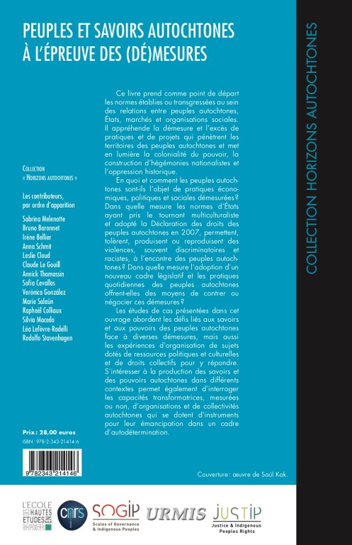 Peuples et savoirs autochtones à l’épreuve des (dé)mesures, sous la direction de Bruno Baronnet et Sabrina Melenotte, collection Horizons autochtones, L’Harmattan, Paris, 2020, 288 pages.